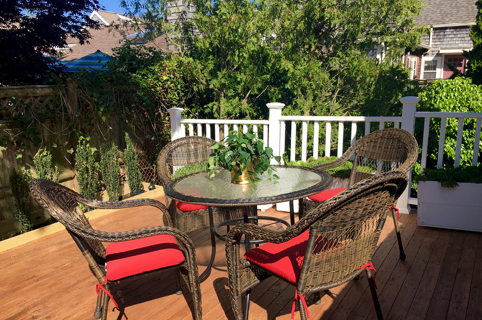 Our accommodations are meticulously kept, the private deck offers a splendid spot to relax day and night. There is always parking for one car and a well behaved dog is always welcome. This space is very centrally located. It is managed by Dyer’s Beach Properties and someone is always on hand should you have any requests. There is a mid week trash service included in your stay. Housekeeping can be ordered for extended stays.